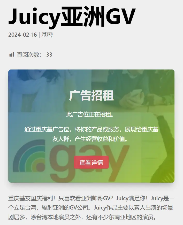 本站已从重庆基(原域名:ckg.gay)迁移过来啦,请各位基友惠存书签哦。原域名188元待售中,欢迎有意经营的基友,速来取走。