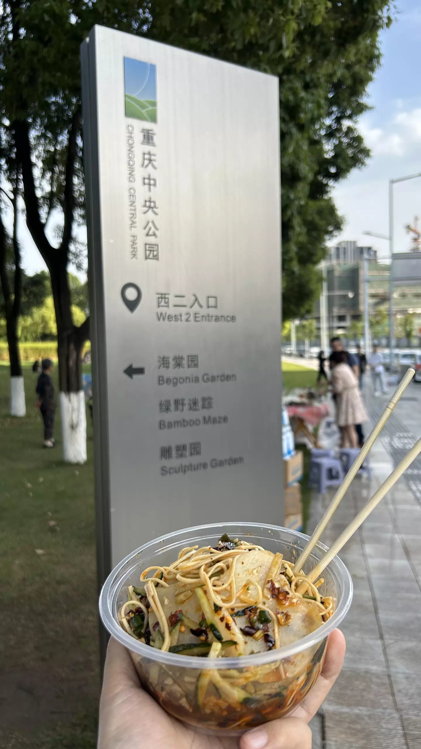 中央公园内部有零星自动饮料和零食贩卖机,销售中的饮料和零食分别有十来种,浅逛的基友,可以轻松前往,无需担忧半途口渴。从中央公园西站商场步行前往,最近的入口是西二入口。因为此处人流相对较多,偶有摊主摆摊贩卖小吃和饮品,各位基友可以前往碰碰运气。我们遇到一位贩卖凉面的摊主,凉面十元一份,虽然价格稍贵,但是配料有量,口味地道,物有所值。