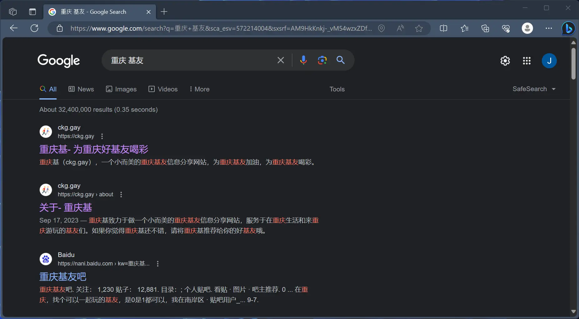 2023-10-11基宝宝在谷歌关键词「重庆 基友」的搜索结果排名首位