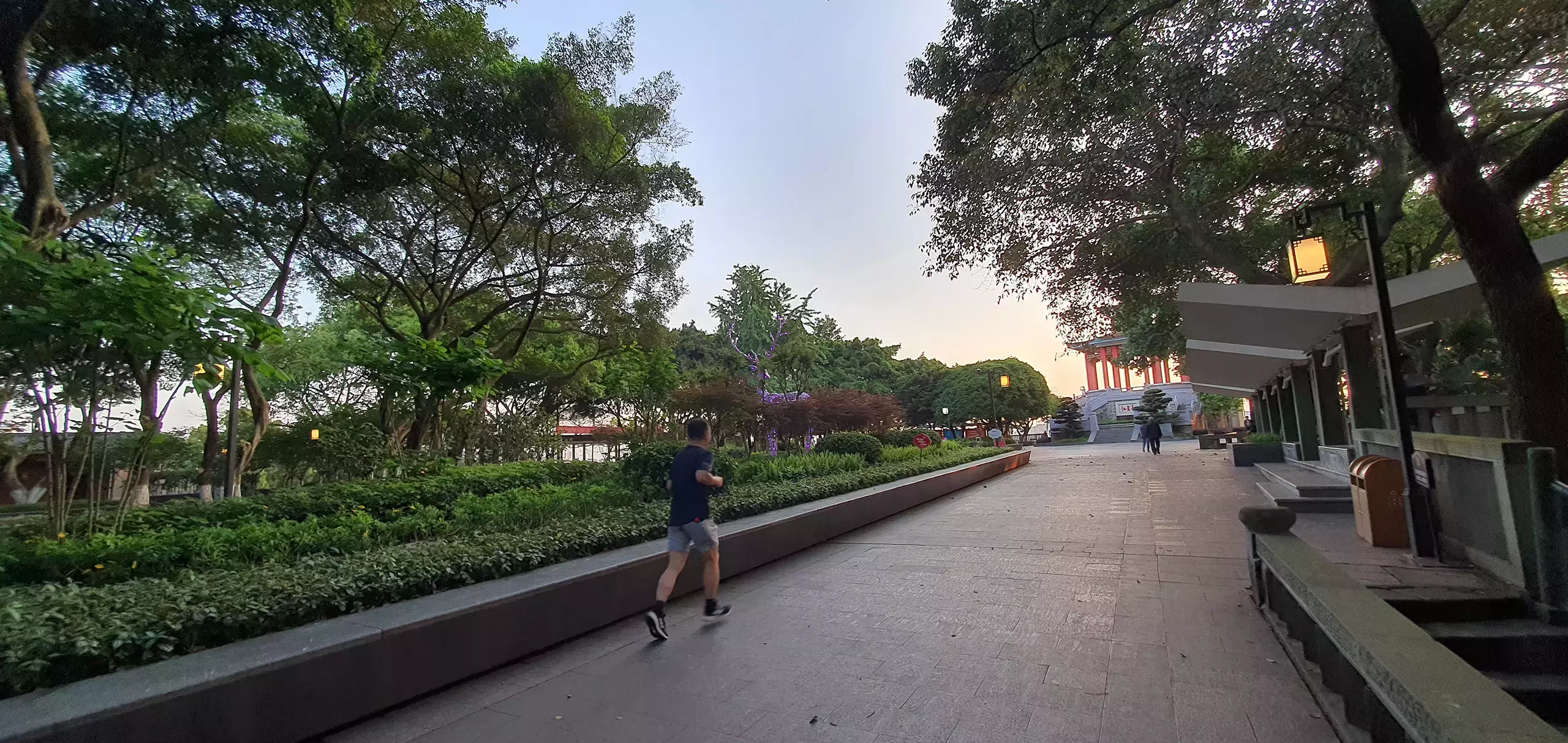 枇杷山公园的山顶是一个别致的休息平台,有小广场、假山和盆景观赏区。休息平台上的植被茂密,晚上入夜时分,有各路广场舞团队争奇斗艳,生活氛围十足。