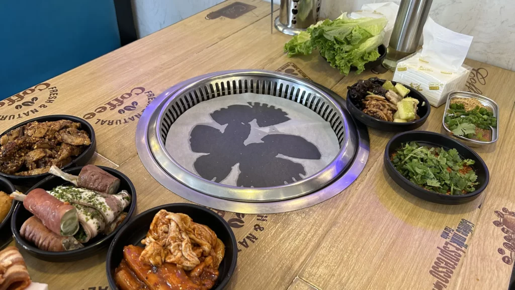 基友们记得要挑选靠窗的桌位,这样才可以实现上面说的看人来人往看日落夕阳,否则你只能看小哥哥服务员哈。叶国林无限烤肉的清洁管理还是不错的,桌面和台面都干干净净的,没有油渍污垢,餐具摸上去也都干净清爽,像极了基友们怀中人的光滑肌肤呢。如果你怀中人已经是大爷大叔大婶的话,那就当基宝宝这话没有说过吧。