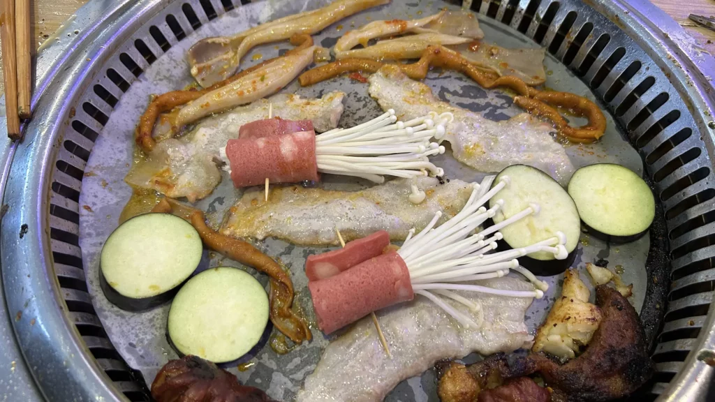叶国林无限烤肉的就餐时间限制是两个小时,正常吃的话,是完全充足的,可以边烤边聊边吃边喝,细火不糊还更入味。看到中意的小哥哥服务员路过的时候,赶紧叫他帮忙换一下烤纸,可以借机制造一些近距离接触的机会呢。
