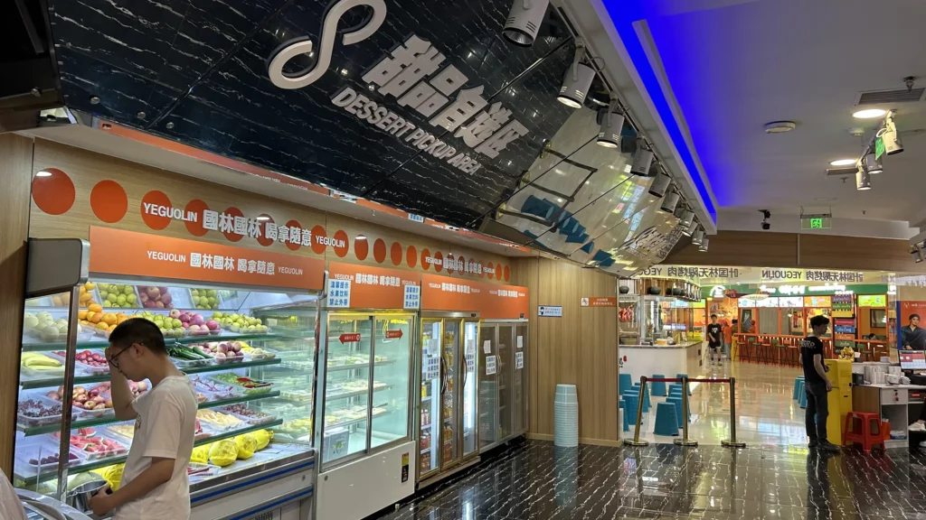 前台背后就是饮料自选区,有水果、冰激凌、甜品、饮料酒水等丰富的选择。仔细看一看,水果都还是品质比较好的,光五颜六色的水果就堆满了一个冷藏柜,简直是勾人呐;基宝宝还特意查看了一下饮料酒水的情况,有两个冷藏柜,分别放置了常温和冷藏的饮料酒水,可以说是比较细致的管理和服务了,而且饮料酒水基本都是大众常见的正规品牌,几乎没有那种从没见过的「特供品牌」。